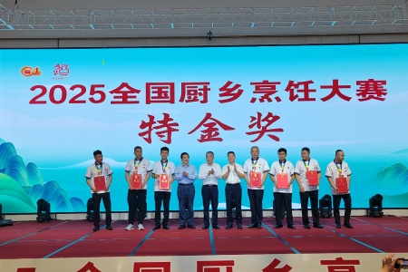 中经总网·中经在线湖南衡东讯(张星兴 通讯员 王峥 唐翔 侯毅强)福鼎传捷报,七月写华章!近日,在刚刚结束的2025全国厨乡烹饪大赛上,湖南省衡东县三位名厨载誉而归——稂姚姚勇夺特金奖,胡国旺、罗坤双双摘金,以“一特双金”的亮眼战绩,让“中国土菜名县”和“中国厨师之乡”的金字招牌再绽光芒。