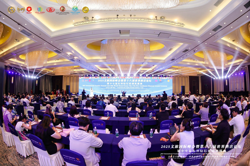中国经济报道(中经总网·中经在线)/世界品牌研究院WBRI/中国数字电视台-中数台/灿烂中国全媒体矩阵 全球联合报道:2025年7月24-25日,“2025文旅国际峰会暨第十八届世界酒店论坛”和“第十七届五洲钻石奖颁奖盛典”在中国海口鲁能希尔顿酒店隆重举办。参加本届“峰会暨论坛”和“第十七届五洲钻石奖颁奖盛典”活动有来自十几个国家和地区的文旅及酒店行业约400位嘉宾代表和企业家。特别是世界华人协会和世界杰出女性领袖联盟组织了60位东南亚企业家及行业协会领导参加了此次“文旅融合及酒店旅游业”国际顶级盛会,参加本届“峰会暨论坛”和“颁奖盛典”活动的中外优秀企业家和总经理们有200多位。