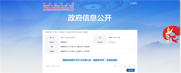 2025年4月29日,为进一步壮大老字号队伍,推动我省老字号创新发展,根据《“福建老字号”认定管理办法》,经企业申报、各地商务主管部门推荐、专家评审、社会公示等程序,福建省商务厅官网发布文号闽商务〔2025〕72号《福建省商务厅关于公布第七批“福建老字号”名单的通知》。本次入选的有80个企业老字号,“同溢堂”凭借深厚的历史底蕴和知名的市场美誉度荣耀登榜!
