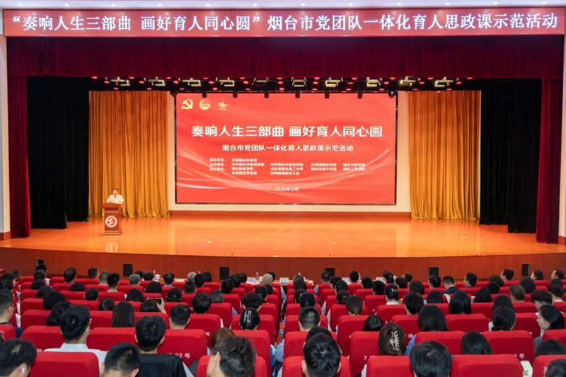 为深入贯彻落实党建带团建、队建的工作要求,打造党团队一体化育人链条,5月29日,由共青团山东省委指导,中共烟台市委组织部、中共烟台市委宣传部、共青团烟台市委、烟台市教育局联合主办的“奏响人生三部曲 画好育人同心圆”——烟台市党团队一体化育人思政课示范活动在烟台职业学院顺利举办。团省委有关部室负责同志,各主办、承办单位有关负责同志出席活动,来自全市的党员、团员、少先队员代表齐聚一堂,共同见证信仰的接力与青春的誓言。