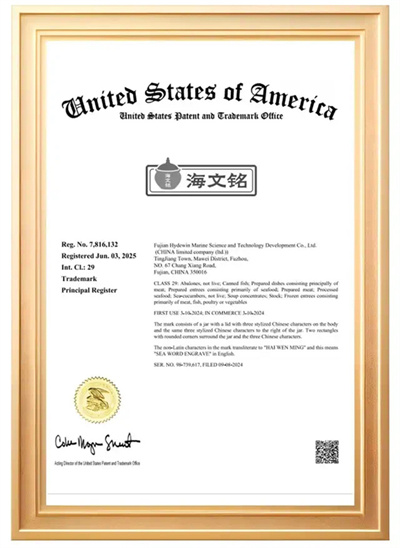 此次美国商标的成功注册,不仅为公司在美国市场的运营提供了坚实的法律保障,更标志着海文铭品牌国际化建设进入新阶段。未来,海文铭将继续深化全球化战略布局,通过持续创新产品和服务,推动中国传统美食文化走向世界,让更多海外消费者品尝到高品质的中国味道。
