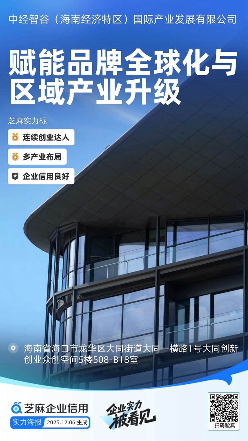 中经智谷(海南经济特区)国际产业发展有限公司成立于2022年12月,注册地为海南海口,注册资本1000万元,是一家以“融媒体+品牌战略营销”为核心定位的产业运营平台。公司依托资源优势,聚焦媒体传播、品牌服务、智库服务、产业投资与国际交流等核心业务,重点布局战略性新兴产业,通过整合多方资源与多家企业建立战略合作,立足海南自贸港打造成为引领我国新时代对外开放的重要门户新机遇,为政府与企业提供资源对接、品牌推广、项目运营等全链条服务。