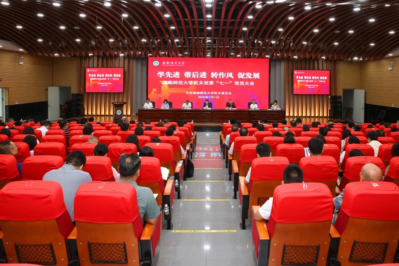 中经总网·中经在线海口讯(闫晓亮)7月1日,在中国共产党成立104周年之际,海南师范大学机关党委以“学先进、带后进、转作风、促发展”为主题,在桂林洋校区图书馆一楼报告厅召开“七一”党员大会。海南省委学习教育第三督导组成员周建新、陈国华,校领导许玫、杨兹举、王瑜、刘汝兵出席,机关全体党员、各二级党组织书记、2025年荣获“光荣在党50年”纪念章党员代表参会。座谈会由机关党委负责人主持。