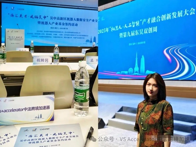 中国经济报道(中经总网·中经在线)/世界品牌研究院WBRI 联合报道:7月11日至12日,2025年“机器人+人工智能”产才融合创新发展大会暨第九届东吴双创周在苏州盛大启幕。这场聚焦前沿领域的重要活动,汇聚各方力量,旨在共同探寻“机器人+人工智能”产业的创新路径。“海汇英才・凤栖吴中”吴中高新区机器人数据安全产业交流会暨机器人产业基金签约活动是本次双创周的一个重要板块,VS+Accelerator中法跨境加速器联合创始人钟旻伦应邀代表加速器及旗下VS+ACCROBO创新板块参加该活动。