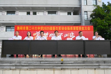 中经总网·中经在线湖南衡阳讯(张星兴 通讯员:王欗樱)骄阳炙烤淬炼钢铁意志,汗水浇灌书写青春华章。9月2日上午,衡阳市第二十六中学2025级新生军训会操表演暨表彰大会在田径场盛大启幕。历经一周的军训磨砺,新生们以昂扬之姿接受检阅。大会由学生处蒋勇华老师主持,校领导班子、全体军训教官及参训师生共同参与。
