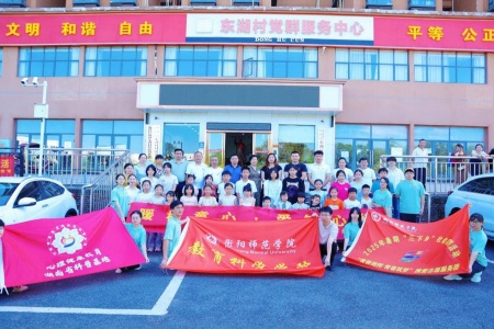 中经总网·中经在线湖南衡阳讯(张星兴 许杰 通讯员:王星 袁熠烽 何英旗 摄影:王星 何悦凤)7月3日至7月7日,衡阳师范学院教育科学学院“青葵湘阳,青春筑梦”携爱志愿服务团在指导老师刘罗博士的带领下,陈胜昔、张婕等10名本科生和袁熠烽等3名研究生志愿者前往衡阳市雁峰区岳屏镇东湖村开展了为期五天的“三下乡”社会实践,于7日下午圆满收官。结束仪式上,志愿者们挥舞着亲手绘制的团队旗帜,与村民代表齐声高唱《那些花儿》,激昂的歌声在村会议室久久回荡,为这场充满专业深度与青春温度的实践画上动人句号。
