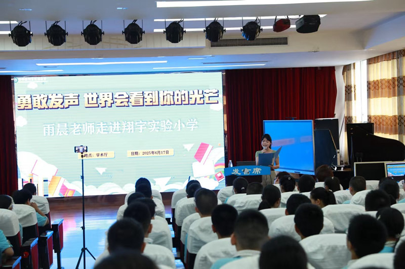 中经总网讯:近期,雨晨老师手持话筒再度走进翔宇实验小学,这场以《勇敢发声 让世界听到你的声音》为主题的授课,恰似一束强光,照亮了学校“让每颗星星都闪耀”的育人版图,在这座以个性化教育为底色的校园里,雨晨老师的实践指导与学校深耕多年的舞台教育体系共振,共同谱写出关于自信成长的教育新篇。