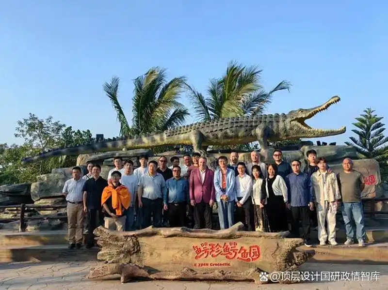 会议期间,考察团专程赴三家镇鳄珍鳄鱼园实地调研。作为东方市特色产业融合发展的典范,该园区采用"公司+村集体+合作社+农户"模式,不仅提升养殖效率,更带动乡村振兴。目前,三家镇红草村"鳄鱼小镇"已集聚53家相关企业,鳄鱼存栏量达42.5万尾,供应全国80%鳄鱼苗,2024年营收突破6.77亿元。鳄珍养殖技术总监姚振向考察团展示了产业发展成果,考察团成员对鳄鱼血等产品的药用价值表现出浓厚兴趣,围绕AI技术赋能养殖监管、产业链数字化升级等议题建言献策。