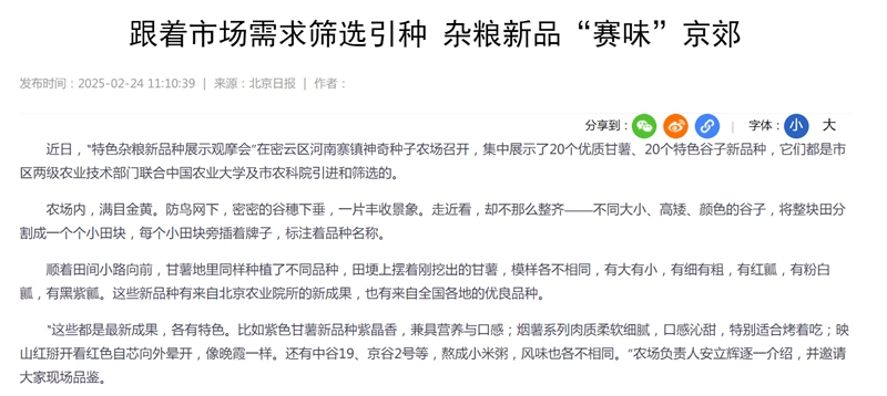跟着市场需求筛选引种 杂粮新品“赛味”京郊
