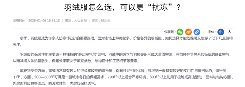 冬季,羽绒服成为许多人防寒“抗冻”的重要选项。面对市场上种类繁多、价格各异的羽绒服,如何选择才能既保暖又耐穿?以下几点值得关注。