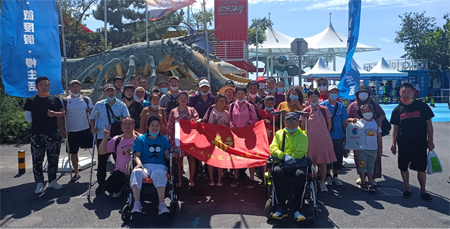 在蓝天碧海间,面对着大海,坐在金黄色的沙滩上,大家欣喜地追逐海浪。残障们虽然身体上有缺陷,可阻止不了他们对美好的向往和对生活的热情,近距离的接近,海水打湿了他们的鞋子,海沙窜入鞋里......他们有的拄着拐杖在海水里漫步前行,有的在爱心残友的陪同下坐在轮椅上“拥抱”大海,残友们拿出手机在海边拍下美景,留下难忘瞬间。听海、踩沙,感受海风拂面,海浪翻卷,大家的脸上洋溢着笑容。