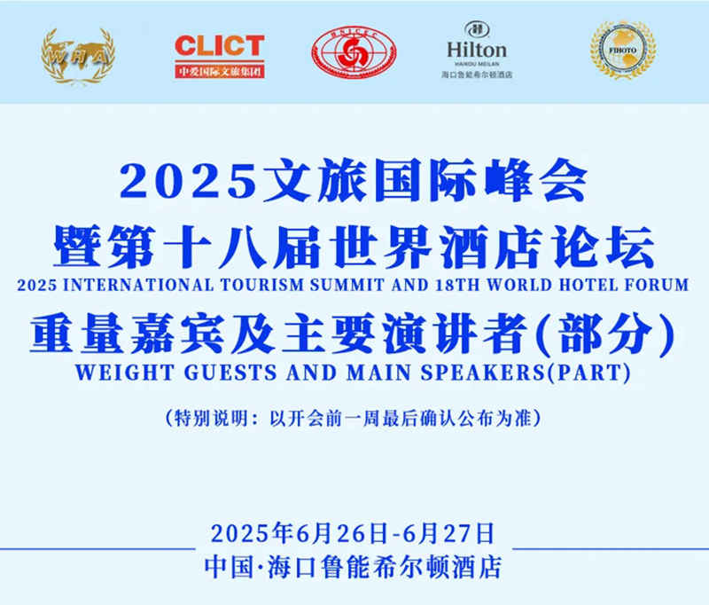 025文旅国际峰会暨第十八届世界酒店论坛和第十七届五洲钻石奖颁奖盛典活动将于今年6月26—27日(26日下午四点半之前报到,五点开幕式)在海口鲁能希尔顿酒店隆重举办。