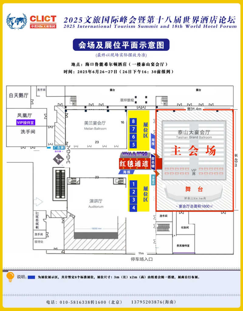 根据多个地方政府部门领导建议和考虑到六月份是国内中小学“考试季”等实际情况,经研究决定,原定今年六月底在海口鲁能希尔顿酒店举办的“2025文旅国际峰会暨第十八届世界酒店论坛”和“第十七届五洲钻石奖颁奖盛典”活动改期为今年7月24—25日(24日周四下午16:30前报到)隆重举办,其他事项不变。