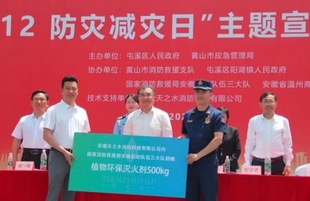 中经总网·中经在线安徽讯(靳汉之),第16个全国防灾减灾日即将到来之际,由黄山市屯溪区人民政府、黄山市应急管理局主办,黄山市消防支队、屯溪区阳湖镇人民政府、国家消防救援局安徽机动支队三大队、安徽省温州商会共同协办“5·12防灾减灾日”主题宣传暨消防灭火演示活动,于5月7日上午10点,在国家消防救援局安徽机动支队三大队营地如期举行。安徽省温州商会会员单位安徽天之水科技有限公司应邀为此次活动提供新型产品与技术支持。
