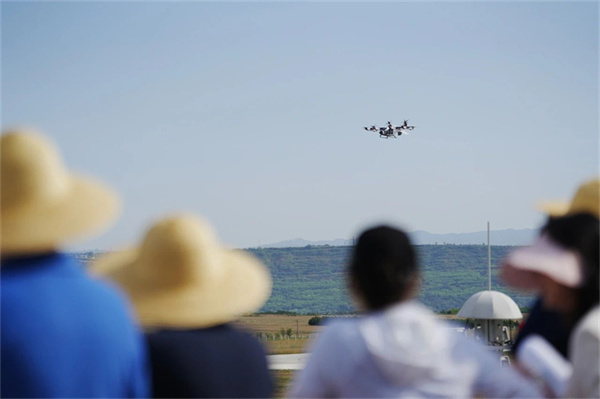 现场,沃飞长空研发团队严格按照标准试验试飞控制程序,向嘉宾们全方位呈现了AE200旋翼从90°到0°,再从0°到90°的倾转过渡飞行试验全过程,安全起飞,平稳落地,赢得了一片掌声。