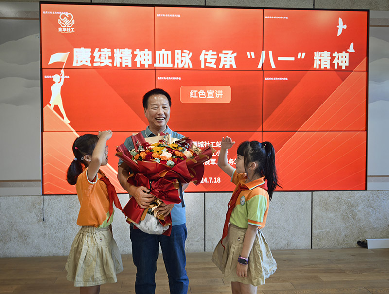 “八一”前夕,浙江省义乌市稠城街道退役军人服务站、稠城社工站、西江小学开展“赓续精神血脉 传承八一精神”, 邀请二等功荣获者、退役老兵卢国良进行红色宣讲活动。
