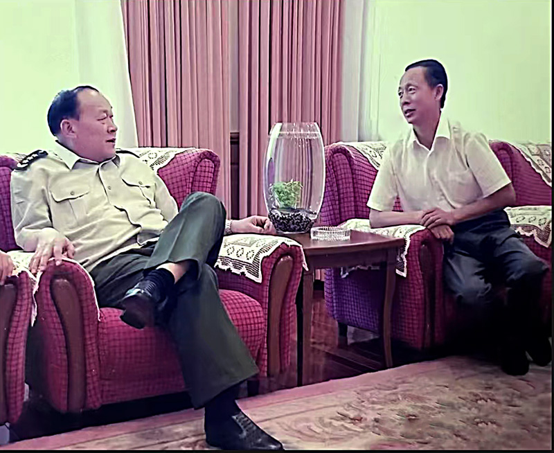 回想当年在军里,他是军长,我们机关同志跟他下去调研,向他汇报工作,给他起草讲话总结,开始我们都带几分拘谨,他却没有一点架子,不以首长自居,也不讲什么俗套,民主朴实,以身作则,胸怀开阔。去他家里,公务员刚报上名字,他隔着墙就会呼叫你,很亲切。我们下边同志从心里尊重他,有话愿跟他说,在他面前不拘束。他善于听取下面意见建议,选对择正。