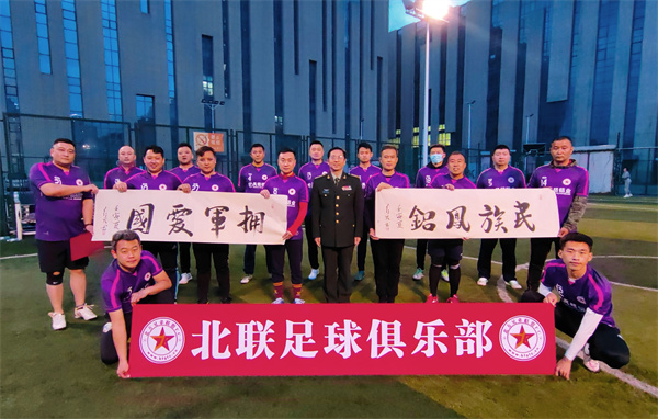 北方国防教育网总编辑张红太教授在向凤铝铝业赠送写有“民族凤铝,拥军爱国”的书法作品后,勉励球队说:“足球事业是我国体育事业项目中非常重要的一项运动,深受广大人民群众喜爱,北方兄弟联盟足球俱乐部自2021年组建以来,秉承健康向上的体育精神,旨在为广大退役军人、爱国拥军人士打造健体强国平台,通过足球运动的方式达到强健体魄,助力国防、服务社会的目的,在丰富业余文化生活的同时,为促进经济社会发展做出应有贡献。”