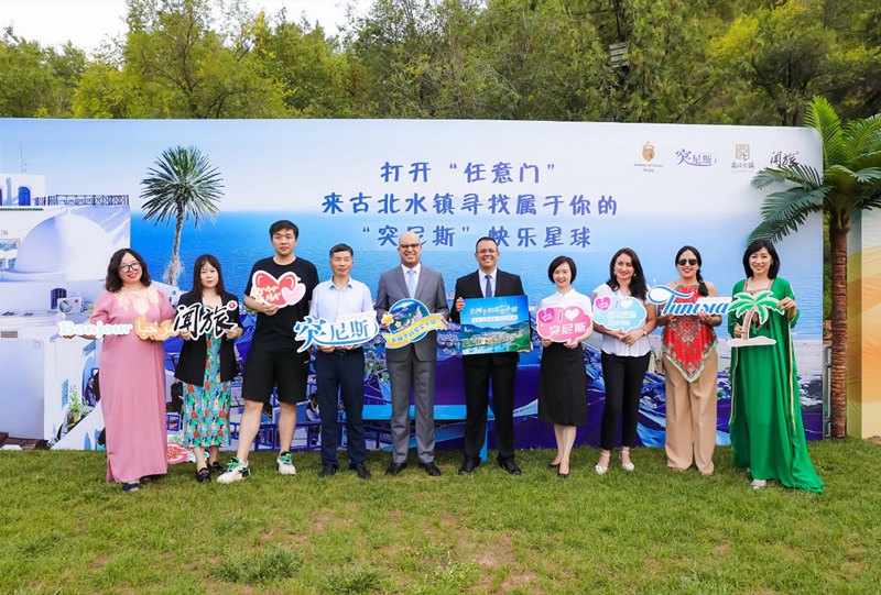 中经网·中经在线讯 2022年7月30日,由突尼斯驻华大使馆、突尼斯国家旅游局、古北水镇、闻旅联合举办的“打开‘任意门’,来古北水镇寻找你的快乐星球”夏日活动在司马台长城脚下惊喜亮相。北京古北水镇旅游有限公司总裁助理陈卫林先生、突尼斯驻华使馆临时代办Mustapha ABID先生、突尼斯国家旅游局驻华首席代表Anouar CHETOUI先生、闻旅CEO周海涛先生以及闻旅联合创始人赵江慧女士等重量级嘉宾出席并见证了活动的启幕,并有20余家媒体到场见证这一欢乐时刻。