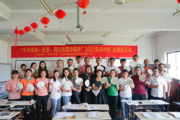 中经网-中经在线讯 值此中秋佳节到来之际,义乌工商职业技术学院红石榴双语服务工作室联合义乌银海社区、鸡鸣山社区以及兰溪裕兴纺织厂开展了“民族团结一家亲,同心共筑中国梦”庆中秋活动,邀请了70余名少数民族同胞参与。