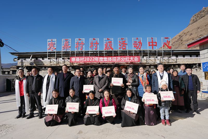 鞠波一行首先深入省退役军人事务厅定点帮扶的寒桑村走访慰问帮扶对象和困难群众,并受邀参加2022年村集体经济分红大会。据悉,今年省退役军人事务厅在稻城县寒桑村实施“甘孜州南路片区多品种青稞试验田”帮扶项目,投入专项资金试种17个青稞品种、流转100亩耕地进行青稞引种试验,经农业部门精准测产,5个试种品种亩产超过200公斤,表现最好的品种亩单产量达283公斤,超过甘孜州平均亩单产量41.5%,较稻城县2021年平均亩单产量提高57%,实现历史性突破,创稻城县有记录以来青稞亩产量新高,为村集体经济带来可观收入,村集体经济收入较去年增长10倍、户均分红提高6倍,全村每户均收获丰收喜悦,最高分红1万余元、最低分红5500余元。