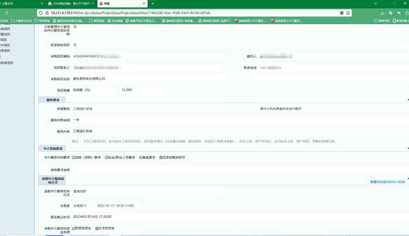 目前,这个项目已在湖南省网上中介超市完成了公告发布、机构报名、机构中选、中选公示、线下洽谈、合同签订等流程,履行合同阶段正在有序进行中。