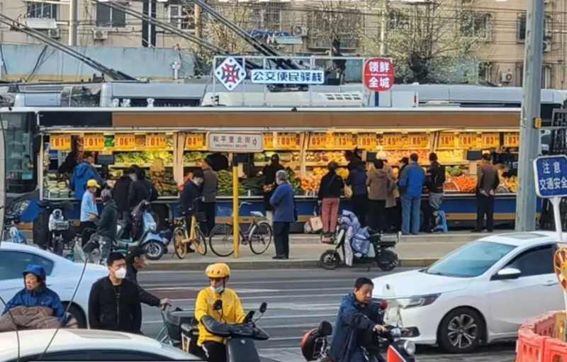 近日,北京公交集团试点上线了“公交便民驿栈”项目,将报废公交大巴改装成生鲜售卖摊点,首家店于3月31日试营业,位于北京市朝阳区柳芳地铁口附近的公交场站北侧。