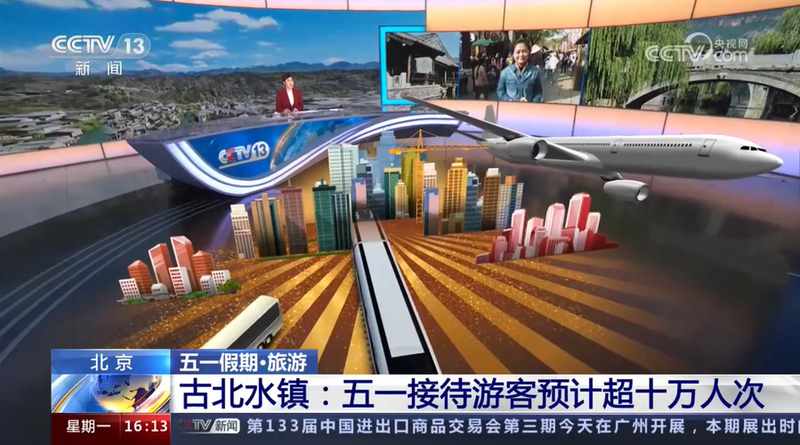 ▲央视新闻频道《新闻直播间》、中文国际频道《中国新闻》等栏目报道古北水镇在“五一”假期期间接待游客数量等情况