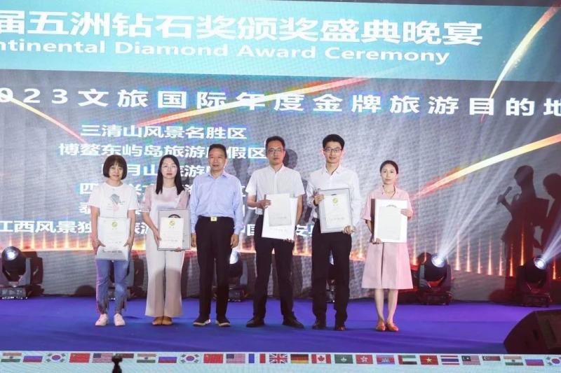 中经网·中经在线特别报道:2023年6月16日,文旅国际峰会暨第十六届世界酒店论坛和第十五届五洲钻石奖颁奖盛典在江西上饶三清山举行。盛典上,宜春市明月山温泉风景名胜区(简称明月山旅游区)荣获“五洲钻石奖·2023文旅国际年度金牌旅游目的地”。