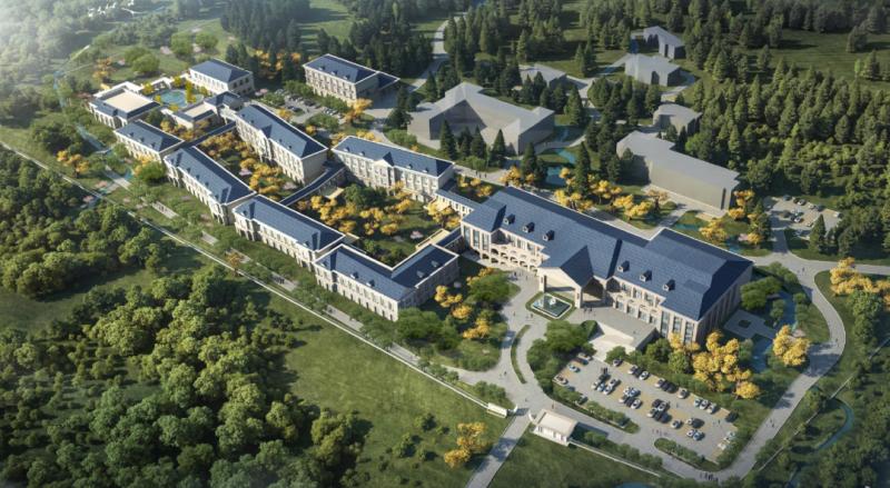 项目占地约450亩,总建筑面积8.79万平方米。拥有各类豪华客房368间套,由多幢楼宇连接而成,院落式布局,呈现中式古典园林风貌。