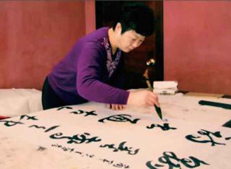 而先生却能手执斗笔,潜心钻研书法艺术四十余年之久,以深厚的艺术功底和超凡的想象力,并以饱满的感情,使书写进入一种忘我的境界,在感情的宣泄中去“记录”当下的“心线”,这样出来的作品在节奏、墨色等各个方面都会呈现其独立的特点,尤其她的大字草书作品,透露出了唐人孙过庭影子,又融入宋代四家的笔意,在当今书坛独树一帜。