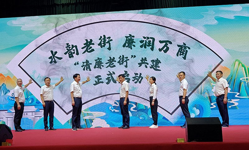 中经总网-中经在线浙江义乌讯(卢国良)9月7日下午,——义乌市佛堂古镇开展“水韵老街 廉润万商”共建活动,着力打造“清廉老街”。义乌市委常委、市纪委书记、市监委主任傅晓辉,义乌市委常委、佛堂镇党委书记丁艳丽,市纪委副书记王庆明及相关部门领导、老街商户代表等在老街新华剧院参加了活动启动仪式。