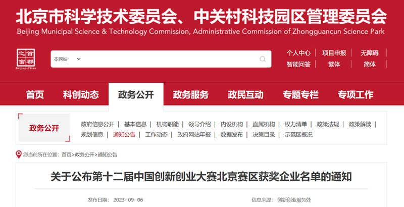 通知显示,按照《科技部关于举办第十二届中国创新创业大赛的通知》(国科发火〔2023〕35号)及《第十二届中国创新创业大赛组织方案》工作部署,北京市科学技术委员会、中关村科技园区管理委员会,北京市发展和改革委员会,北京市教育委员会,北京市经济和信息化局,北京市财政局,北京市人力资源和社会保障局组织完成第十二届中国创新创业大赛北京赛区赛事评选工作,最终评选出28家获奖企业,现将名单予以公布。
