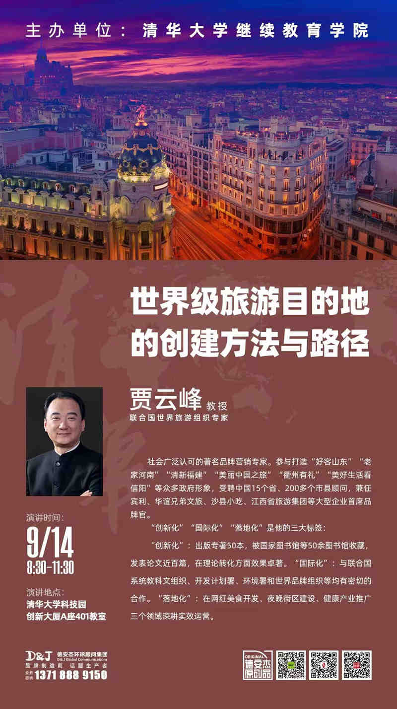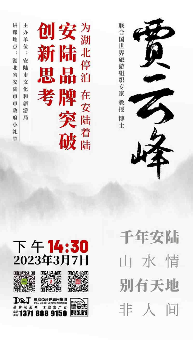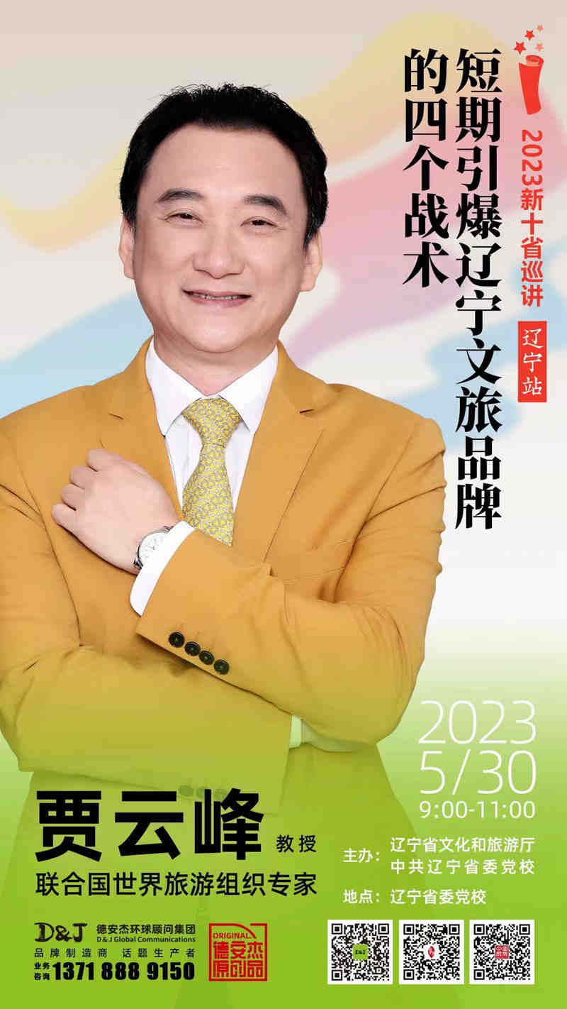 贾云峰教授,社会广泛认可的著名品牌营销专家。参与打造“好客山东”“老家河南”“清新福建”“美丽中国之旅”“衢州有礼”“美好生活看信阳”等众多政府形象,受聘中国 15 个省、200 多个市县顾问,兼任宾利、华谊兄弟文旅、沙县小吃、江西省旅游集团等大型企业首席品牌官。