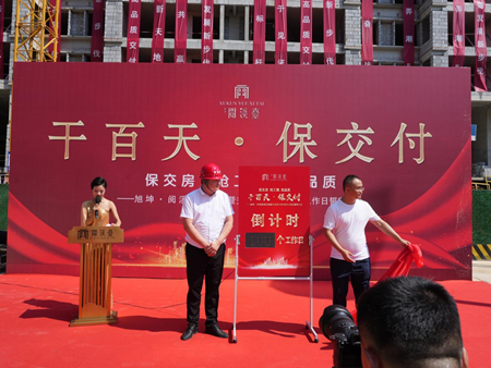 信心源于实力,信任源于见证。誓师大会上,延安旭坤房地产责任有限公司要求,挂图作战、明确时间表、路线图、任务书、责任制,倒排工期、确保有序实施、誓保交付;以闭环管理推动各项工作落地见效,项目各部门及各参建单位互相配合、通力合作、团结一致,顺利完成目标任务,要誓保按时交房,确保品质筑造,坚决打赢旭坤·阅溪臺项目完美交付攻坚战。工程监理总负责人就工程进度安排、竣工实施计划、资金保障、监督跟进等进行表态发言,要求各参建单位做好现场的劳动力组织和资源调配,将全力释放产能,确保工期如期完成,高标准、高质量完成各分项工程施工,圆满完成生产任务。