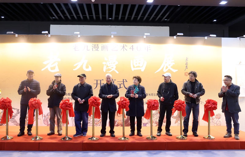 4月13日上午,由中国戏剧文学学会主办、北京美学会和中国戏曲学院中国喜剧美学研究所协办的“老九漫画艺术40年·老九漫画展”在民族文化宫开幕。