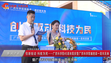 【中经视频导读】创新驱动 科技为民。5月21日,广西科学院45周年院庆科普宣传月暨广西科学院细胞库一周年庆典在广西南宁举行。广西科学院党组书记、院长元昌安,广西科学院党组成员、副院长吕郁彪,广西科学院院长助理黎贞崇,广西科学院区域与国际合作部部长吴军华,广西科学院高技术集团总经理周达,广西桂科院康脉生物科技有限公司董事长梁作鹏,广西科学院大健康产业研究院干细胞团队学科带头人、广西桂科院康脉生物科技有限公司总经理刘建玲,美国西奈山医学院教授、美国国立卫生研究院肝病中心医学博士后、济宁医学院附属医院中美肝病研究所副所长、广西桂科院康脉生物科技有限公司首席专家洪丰教授等有关领导和嘉宾出席会议。广西科学院副院长吕郁彪在会上做重要讲话。