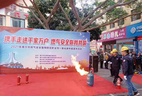 11月11日,南宁百江联合南宁市住建局开展一氧化碳中毒应急演练活动。据了解,南宁市瓶装液化气用户有40多万户,其中城中村居多,防范工作尤为重要。