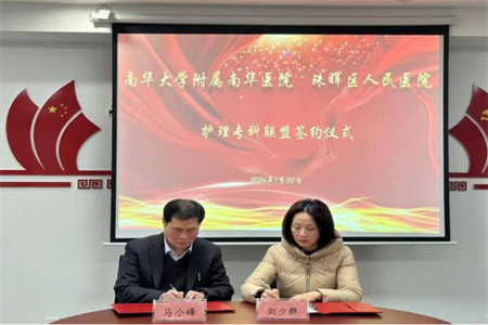 中经总网·中经在线湖南衡阳讯(许杰 张星兴 通讯员:戴丽)为进一步提高衡阳市珠晖区人民医院基础医疗服务能力,推动医院护理工作不断提升,更好地满足广大群众的健康需求。2024年1月30日下午,南华大学附属南华医院与珠晖区人民医院隆重举行了“护理专科联盟”签约仪式。