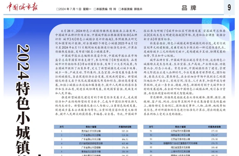 中国城市报| 2024特色小城镇传播热度指数在沪发布