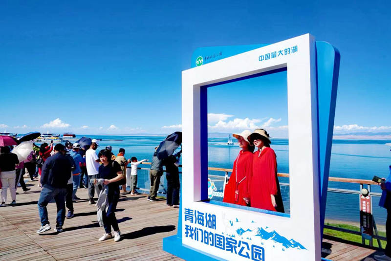 青海湖流域是我国西部重要的水源涵养地和水气循环通道,是青海省“两屏三区”生态安全格局的重要组成部分,是维护青藏高原东北部生态安全和我国西北部大环境生态平衡的重要水体,是控制西部荒漠化向东蔓延、保障东部农业区生态安全的天然屏障,是高原生物基因库、国际候鸟迁徙通道的重要节点,生态地位十分重要。海南州多措并举,探索走好具有青海湖特色的人与自然和谐共生的高质量发展之路。图为6月24日,人们在青海湖二郎剑景区赏景,感受自然、生态、人文之美,激发对未来的美好憧憬。赵树宴 摄