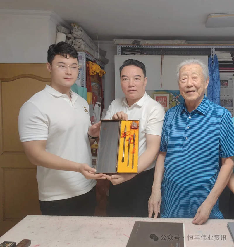 在一间布置简朴又充满文化气息的房间内,阳光透过窗帘投下斑驳的光影。2024年7月13日,这是一个特殊的日子,周总理的堂侄孙中国恒丰伟业投资集团董事局主席周传雄,董事长助理周浩然与革命先辈谢觉哉的外孙房总以及瞭望中国杂志社方总等同志一起共同拜访了周恩来总理的秘书——古今明。古今明原名古进明,毛主席亲自为其更名,将名字中的“进”改为“今”,寓意过去、现在、未来。
