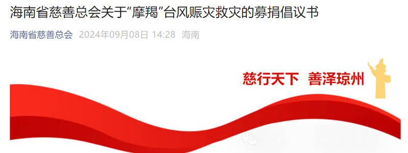 【头条】海南省慈善总会关于“摩羯”台风赈灾救灾的募捐倡议书