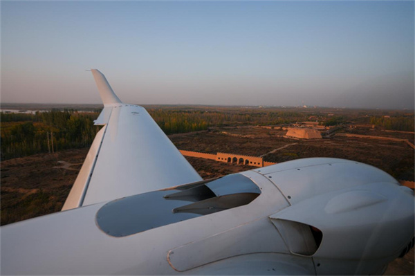 10月14日,在宁夏中卫,参与“飞越长城”航空文化活动飞机掠过明长城中卫姚滩段2号敌台。(摄影:杨光)这是本次“飞越长城”活动集结后首次分批次实现夜航飞行转场落地民航机场,此次“飞越长城”活动的飞行队伍在夜幕下展现了出色的飞行技巧与团队协作,为后续活动的顺利进行积累了宝贵的经验,预示着“飞越长城一万里,俯瞰中华五千年”的壮丽征程将继续书写辉煌篇章。