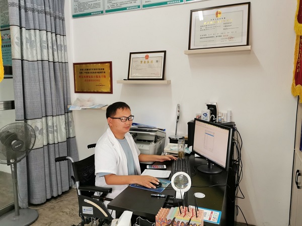 中经报道11月23日讯 在安徽省太湖县新仓镇有一位励志青年曹亮,他双腿因病而残疾。就是这样一位长期靠轮椅代步的青年,与命运做斗争,竟考进了医学院,历经十余年专供皮肤病,而成为了执业医生,经其医治的皮肤患者康复后对他赞不绝口,曹亮因此被群众称为”轮椅上的美容师”。
