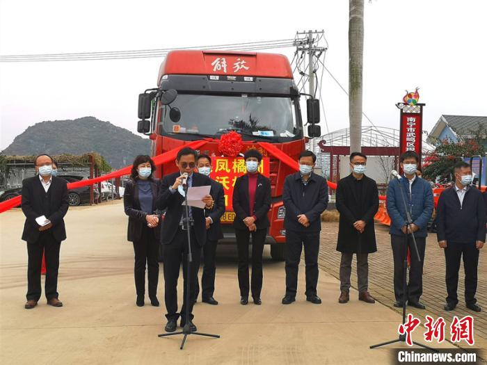 图为武鸣沃柑出口发车仪式现场。广西统战部供图