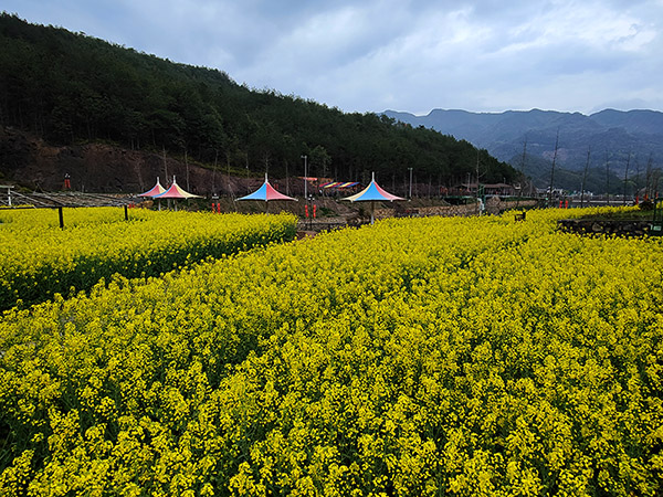 为了把景区装扮的更加优美,陈书记带领乡亲们,在景区周边的山地和边边角角都种上了油菜花,由于精心管理,油菜花长势喜人,给景区披上了金黄的盛装,大批游客争相到景区观光、拍照。油菜仔丰收有望,又能给乡亲们带来可观的收入。