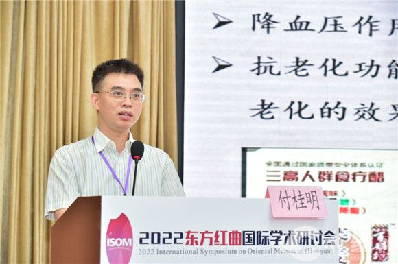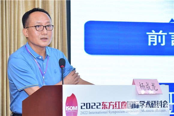 孙宝国院士代表中国食品科学技术学会致辞,他指出,红曲产业是传统食品产业的典型代表,中国是世界上红曲产量和用量最多的国家,为适应食品工业健康转型的需求,契合国家科技创新规划,红曲产业应持续创新,大胆突破,从人文、科学等多角度探索红曲深厚的文化内涵,展现红曲独特魅力。