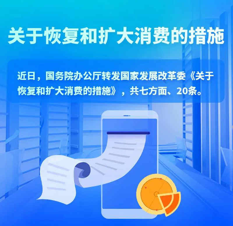 近日,国务院办公厅转发国家发展改革委《关于恢复和扩大消费的措施》,共七方面、20条。