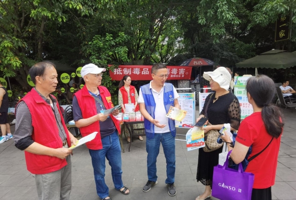 【中经总网·中经在线四川成都讯】为进一步贯彻落实禁毒宣传工作,以民众的安全需求为导向,为居民把好禁毒关,营造平安无毒的社区环境。近日,四川省成都市锦华路街道晨辉社区在“成都记忆”茶文化广场开展了禁毒宣传活动。晨辉社区在老党员工作室带动下,组织老党员志愿者、微网格员、禁毒志愿者、老协志愿者、居民群众等80余人参与本次活动。